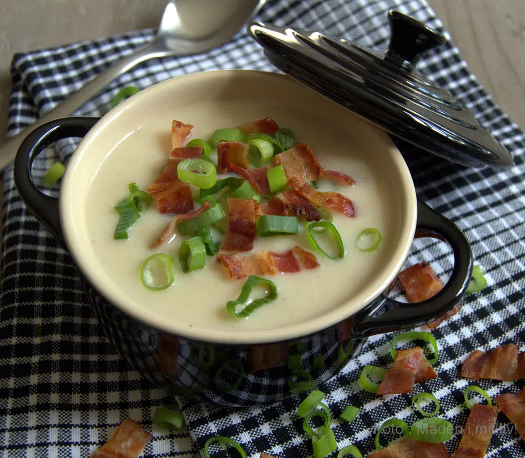 Cremet blomkålssuppe med forårsløg og bacon…